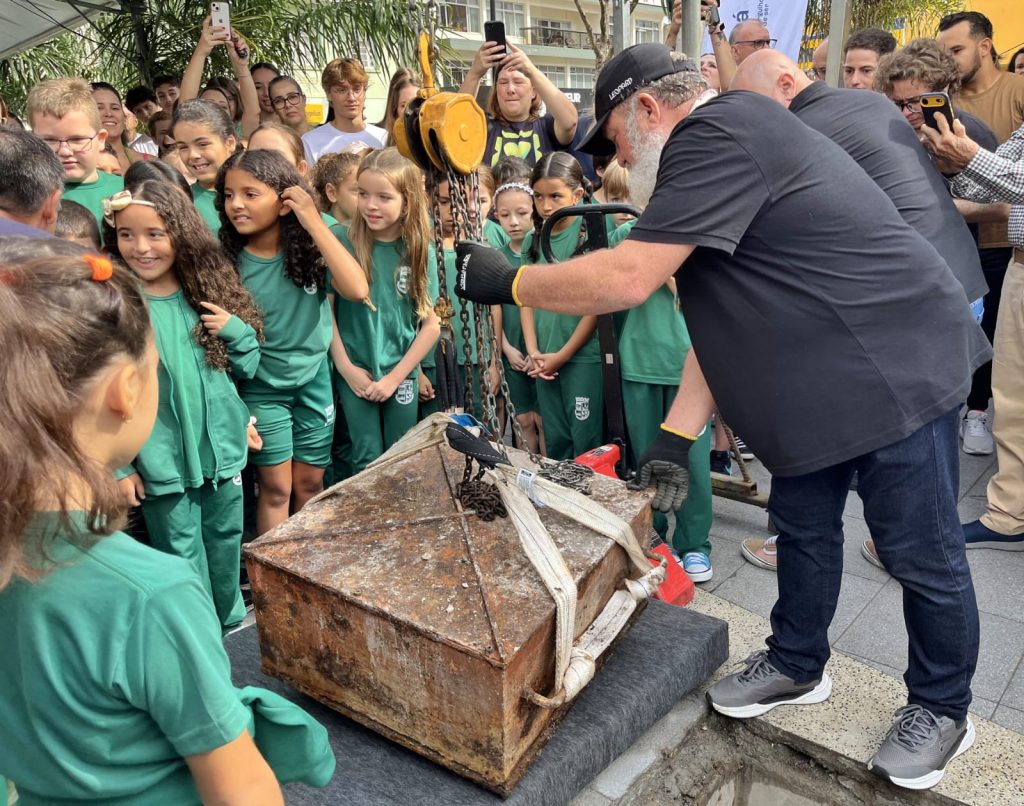 A cápsula do tempo foi enterrada em 1976, durante as celebrações do centenário do município, com o objetivo de preservar registros e memórias daquele período.